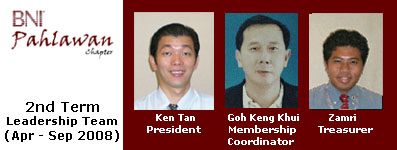 Copyright ©2007 BNI Melaka Region. All Rights Reserved.