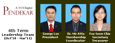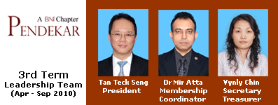 Copyright ©2007 BNI Melaka Region. All Rights Reserved.